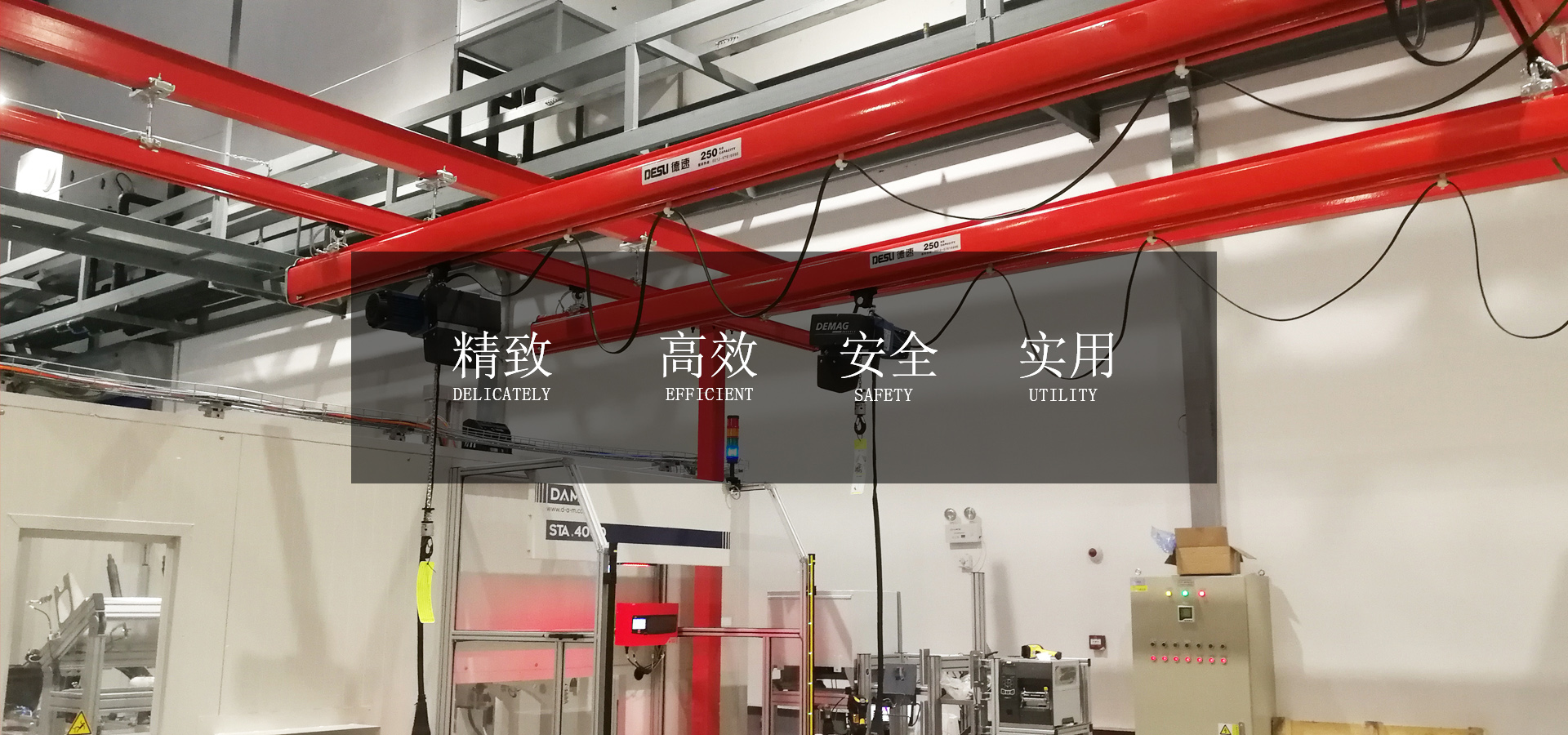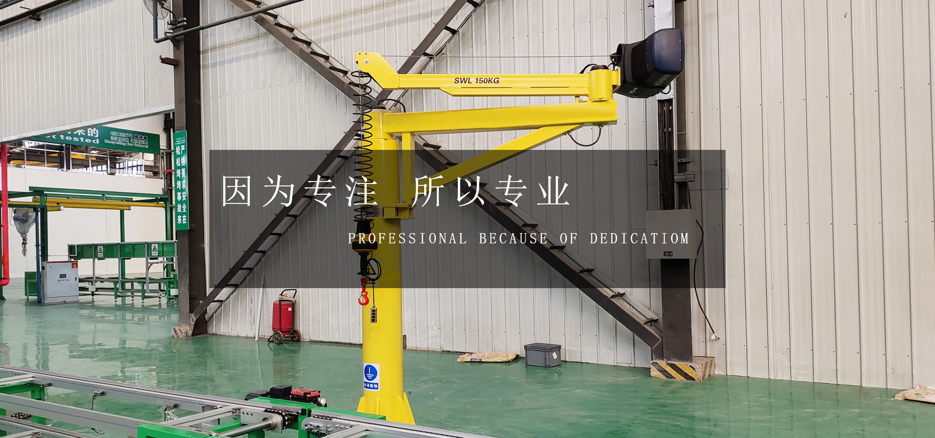 公司產品涵蓋了輕型起重機、智能提升機、懸臂吊、氣動平衡吊、KBK軌道、鋁合金輕軌吊、助力機械手、橋式起重機、懸掛起重機、移動龍門吊、電動葫蘆、起重機驅動馬達、起重機配件等全系列產品。